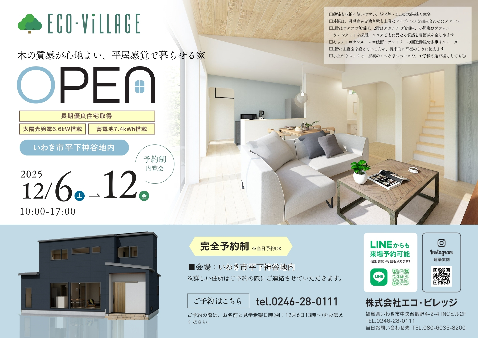 このたび、お施主様のご厚意により、いわき市平下神谷にて予約制内覧会を開催させていただきます。