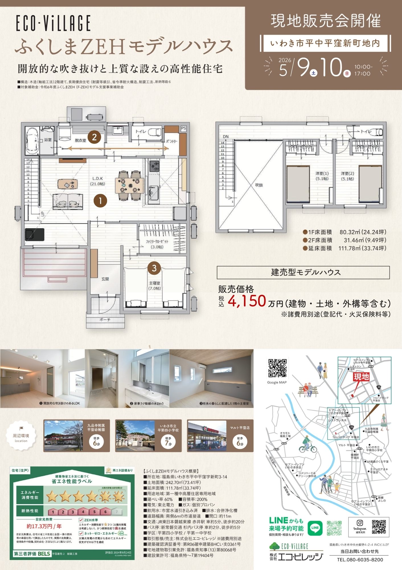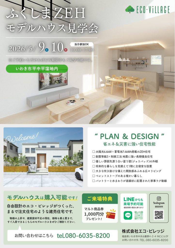 このたび、いわき市平中平窪にてふくしまZEHモデルハウス見学会を開催させていただきます。