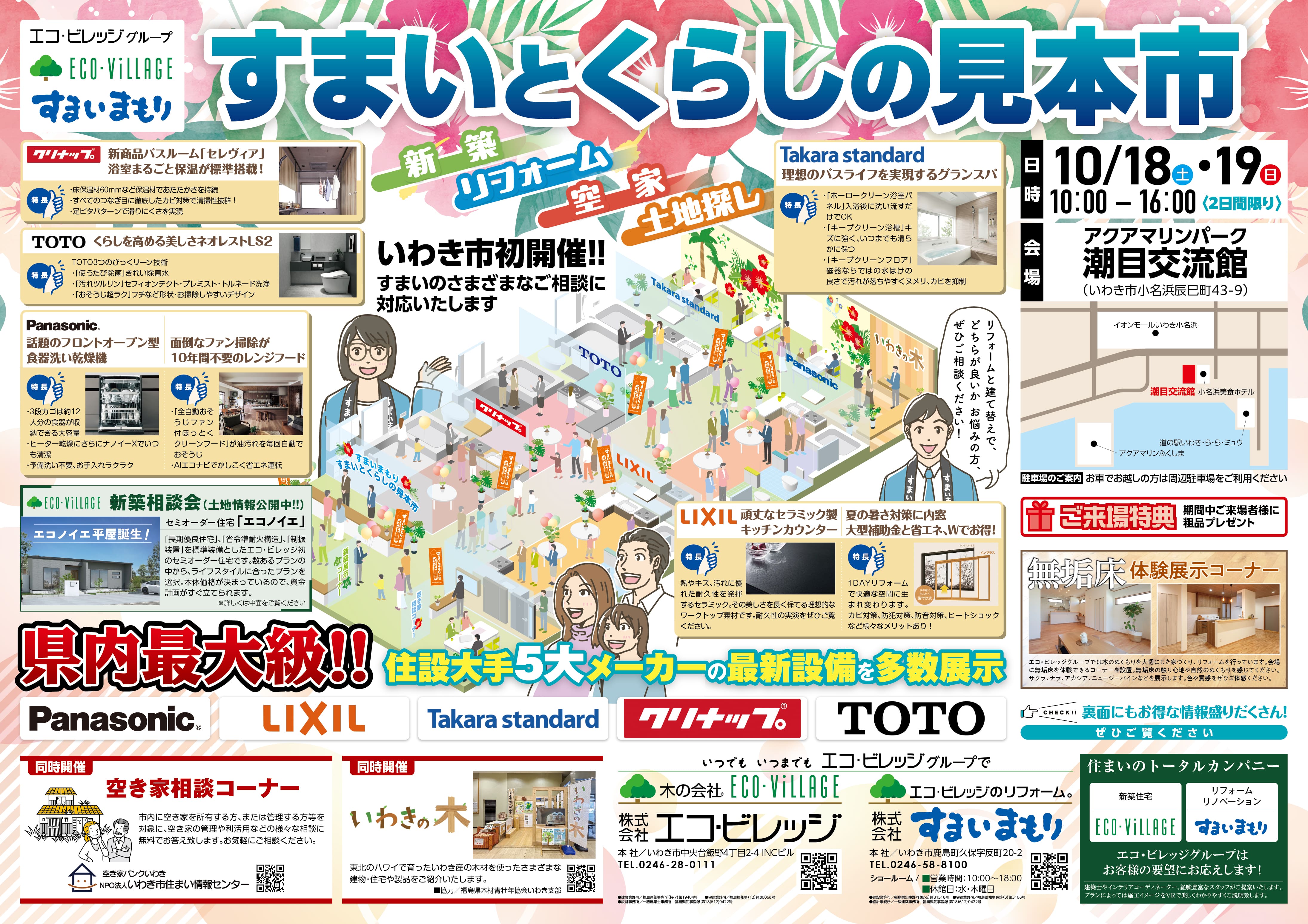 10/18(土)・19(日)にアクアマリンパーク潮目交流館にてすまいとくらしの見本市を開催いたします!