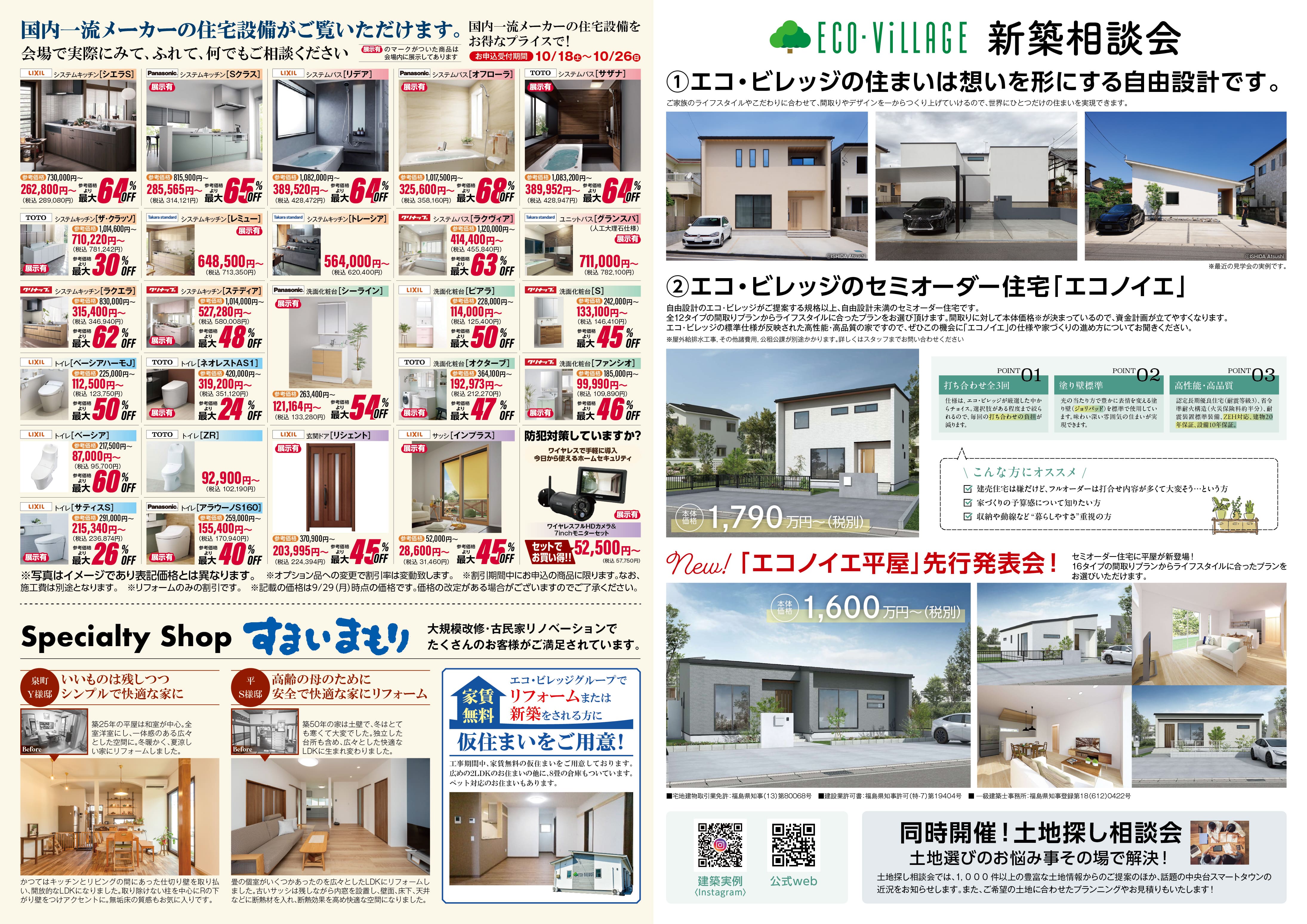 当日は5大メーカーの住宅設備の展示の他、新築相談会・セミオーダー住宅「エコノイエ平屋」の先行発表会・土地探し相談会も開催いたします!